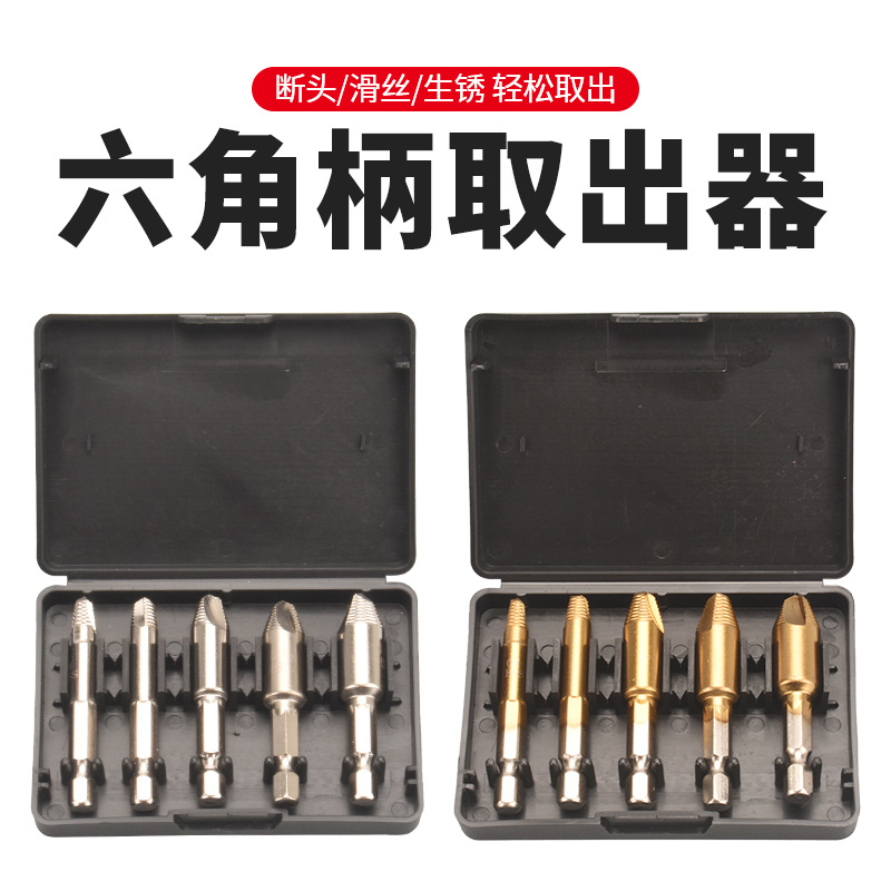 5点セットシングルヘッド取り出し器破损滑り止めねじ取り外し工具チタンメッキ反糸出し歯セット断线取り出し器