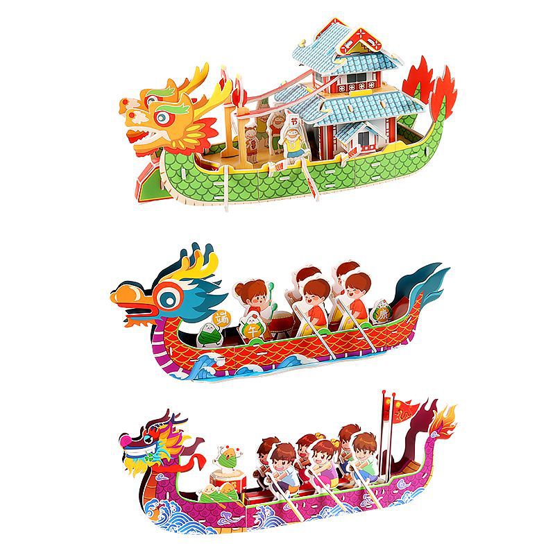 端午節ドラゴンボート手作り素材パッケージパズルモデル紙 3D 立体組み立て船ビルディングブロック子供のおもちゃ