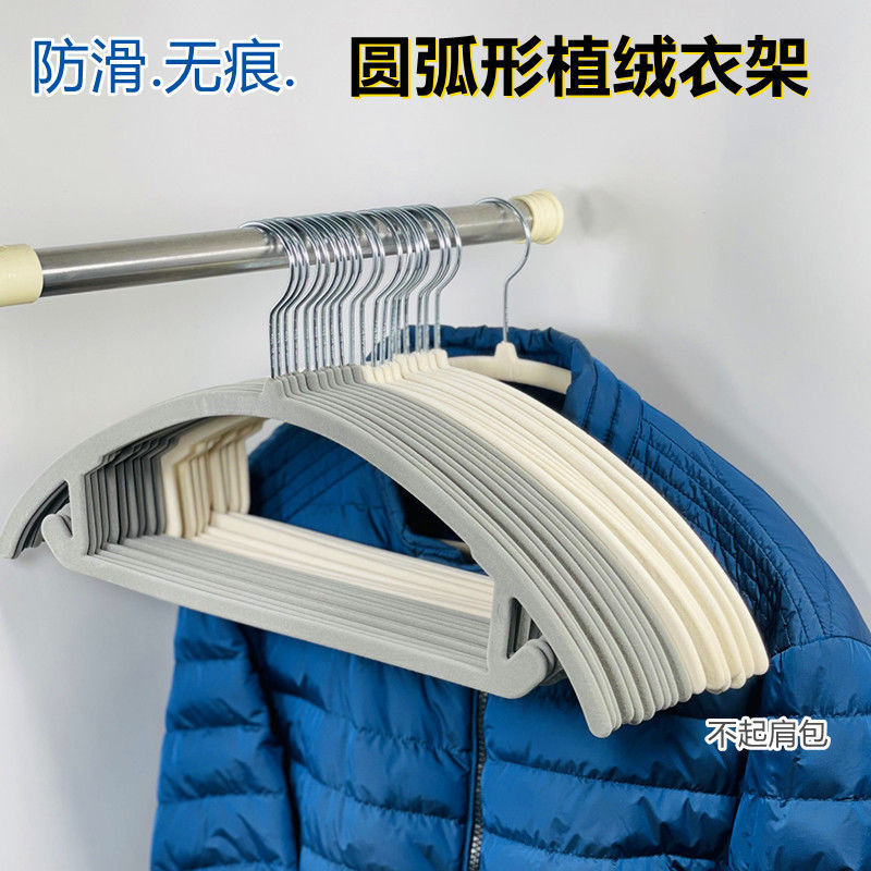 滑り止め、跡が残らない植毛ハンガー、スエード家庭用鼓こぼれ防止、曲線半円形マジック整理衣類ハンガー