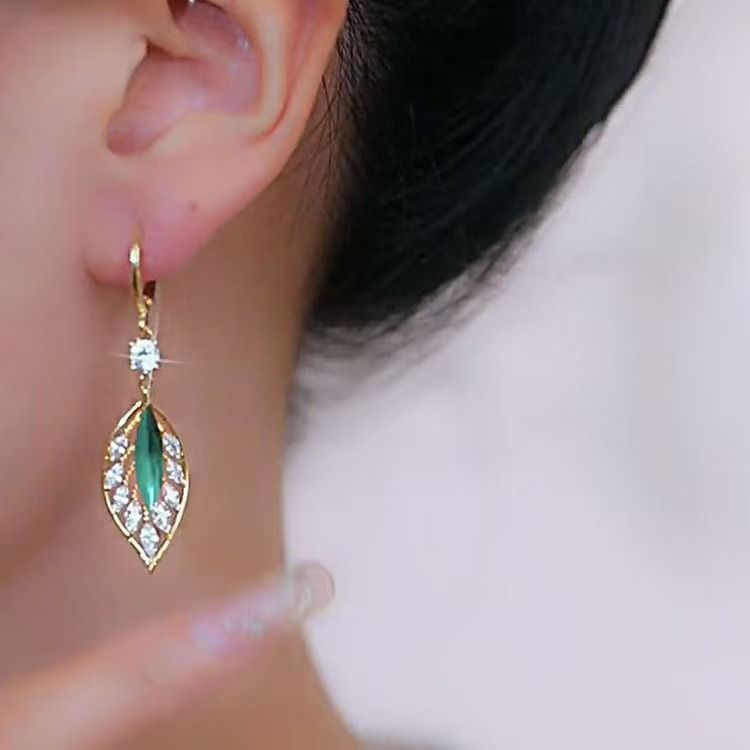 輝くジルコングリーンリーフデイリー多用途イヤリングライトラグジュアリーハイファッション気質イヤリング2025新しいトレンド
