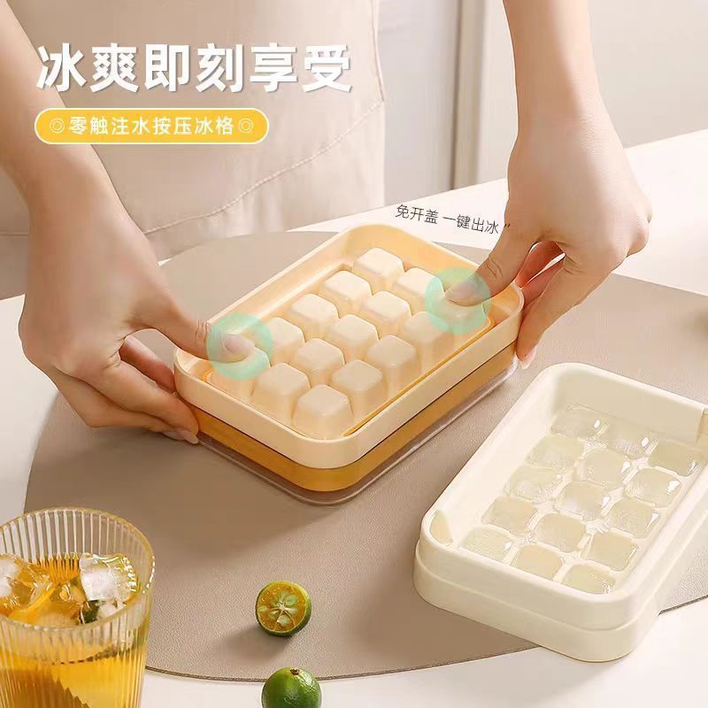 ゼロタッチ注水プレス製氷皿アイスキューブ型家庭用 DIY 製氷機カバー付き簡単に取り外し可能ポータブル冷凍アイスボックス