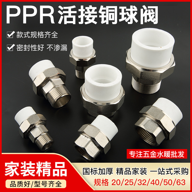 妍沐厚さpprダブル活接銅ボールバルブ4分6分1インチdn20/25/32熱融水管バルブ部品