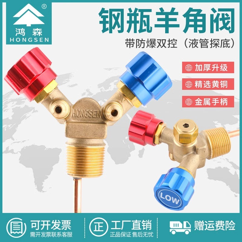 鴻森冷媒回収給油専用ボンベ弁/高低圧羊角弁/防爆冷媒ボンベ口弁