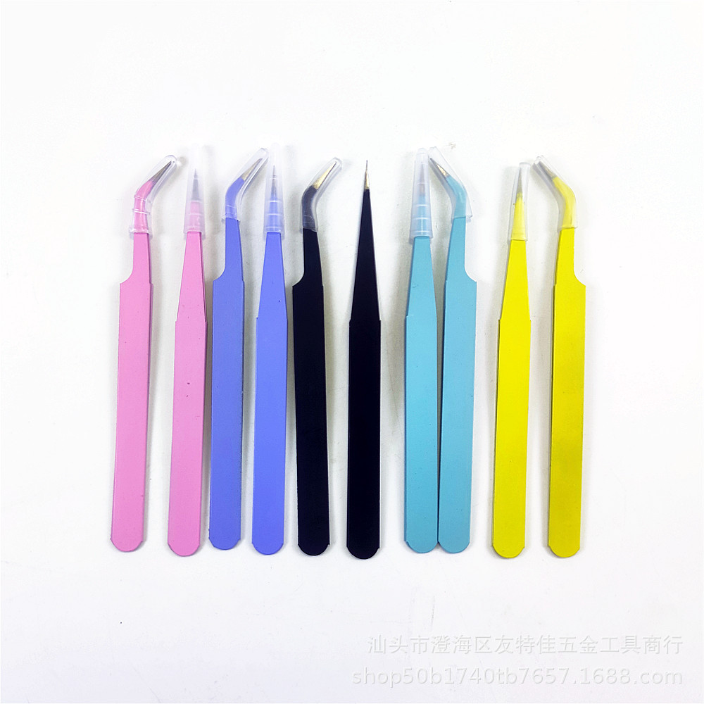 ステンレスの精密ピンセットのネイルカラーのマカロンの手作りの帳簿のピンセットのまっすぐな頭のカーブのまつげはピンセットを接ぎ木します。