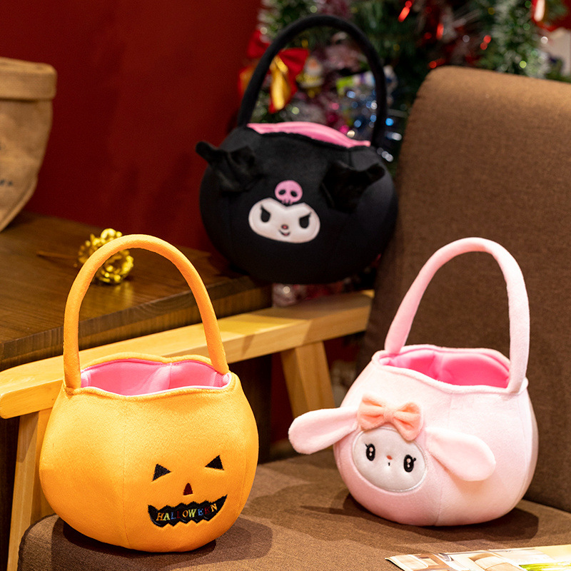 ハロウィーンカボチャのバケツは砂糖袋の悪魔のキャンディー袋の手提げプレゼント袋の子供のキャンディーかごのシーンは道具を装います。