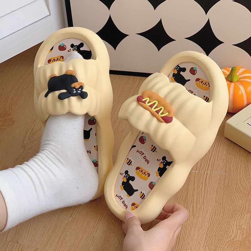 ホットドッグスリッパ女性の夏のアウターウェア漫画インターネット有名人新しいソフトソールホームノンスリップ屋内カップル寮サンダルスリッパバッチ