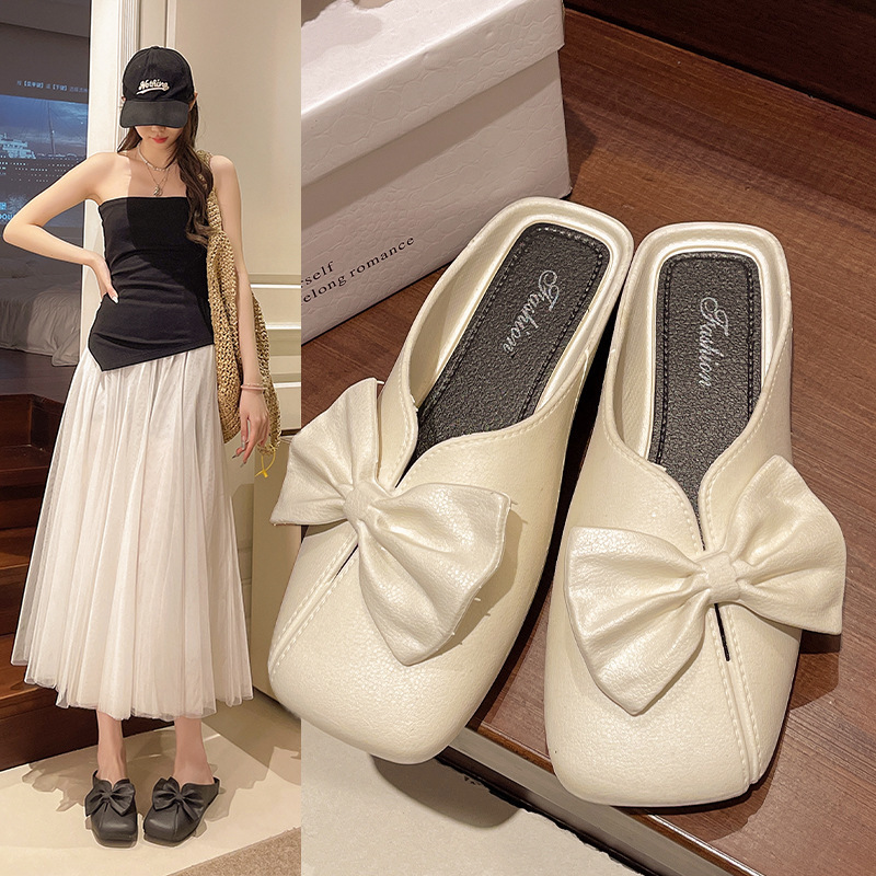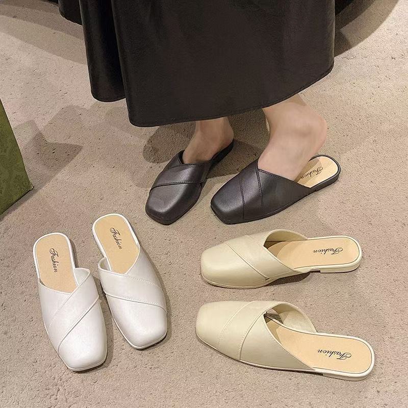 平底包頭半スリッパの女性夏外着2025年夏の新型フランス式怠け者が足を組んで靴を引っ張る