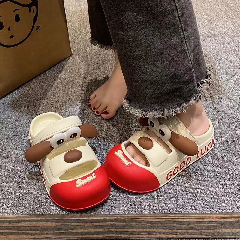 糞感スリッパを踏む女性夏外着アニメホットドッグネット赤ファッションカップル軟底家滑り止め室内サンダル