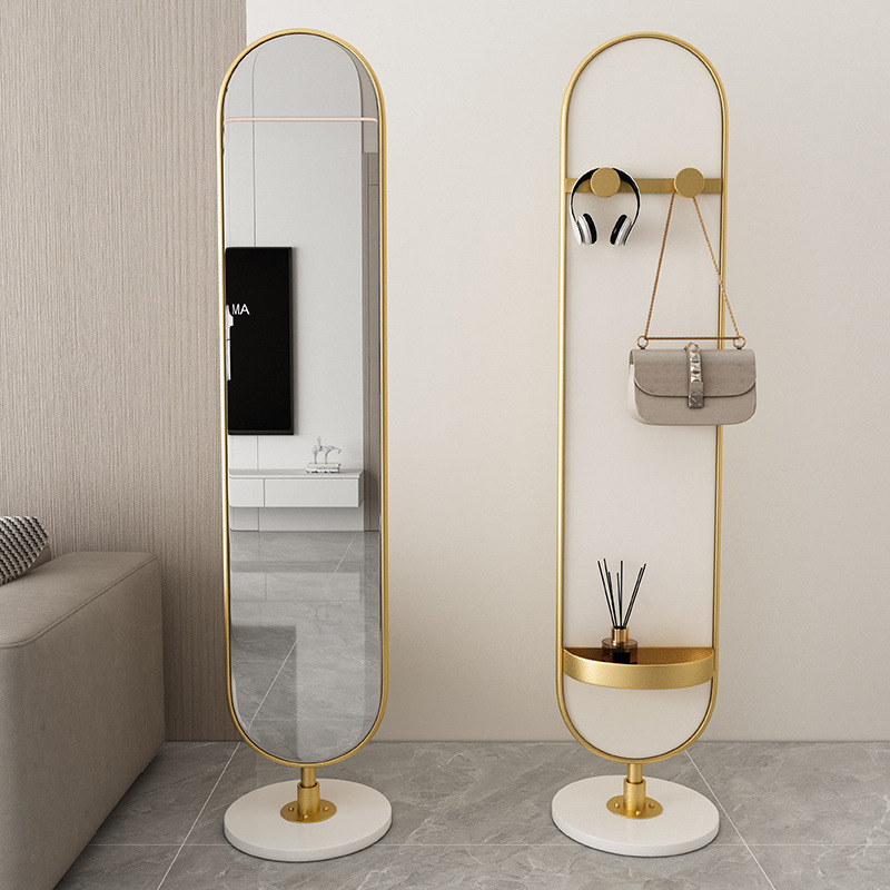 ライトラグジュアリースタイルフロアミラーホームベッドルームクリームスタイルドレッシングミラーインターネットセレブアイアンアート回転式全身ミラー収納付き