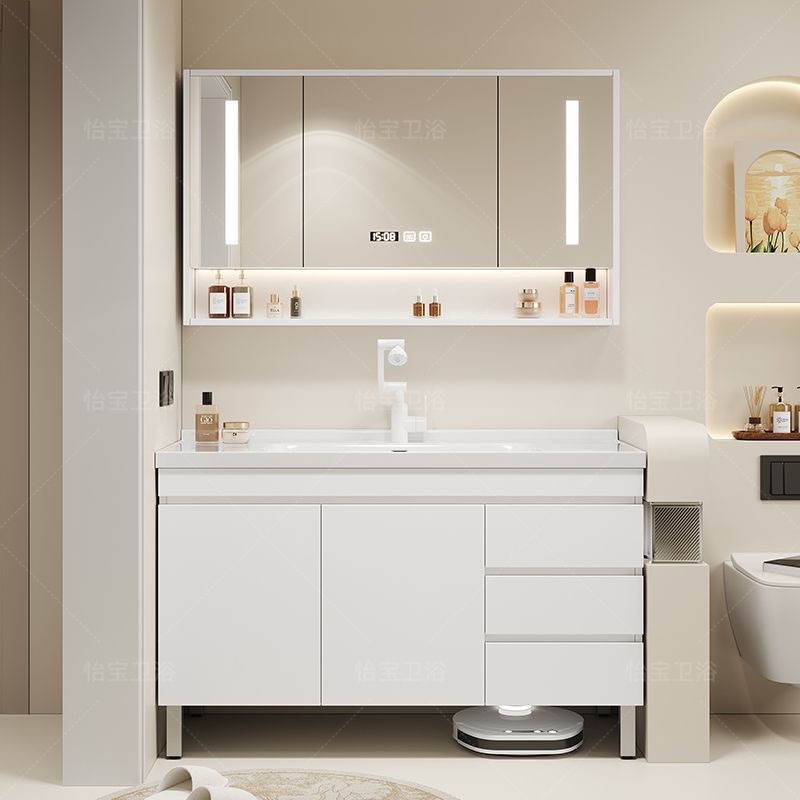 モダンでシンプルなバスルーム床置き多層無垢材バスルームキャビネット組み合わせセラミック一体型洗面台洗面台