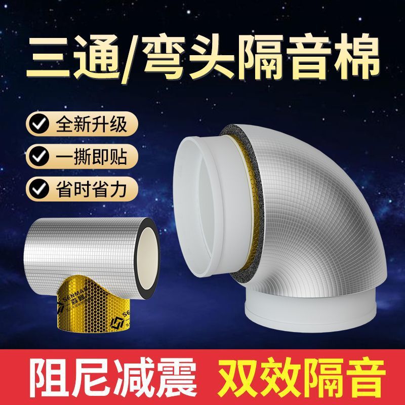 下水管遮音綿、エルボ三方専用吸音綿、減衰シート、騒音低減・衝撃吸収材、粘着式で貼りやすい
