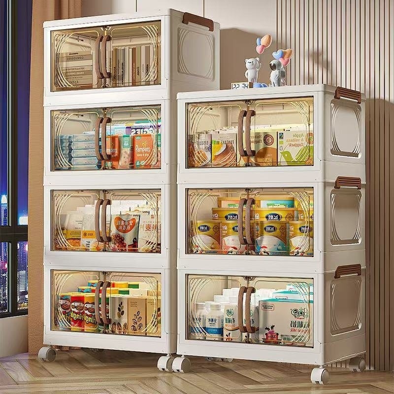 折りたたみ多層プラスチック収納キャビネット家庭用防塵収納キャビネット折りたたみ収納キャビネットリビングルームおもちゃスナック雑貨キャビネット