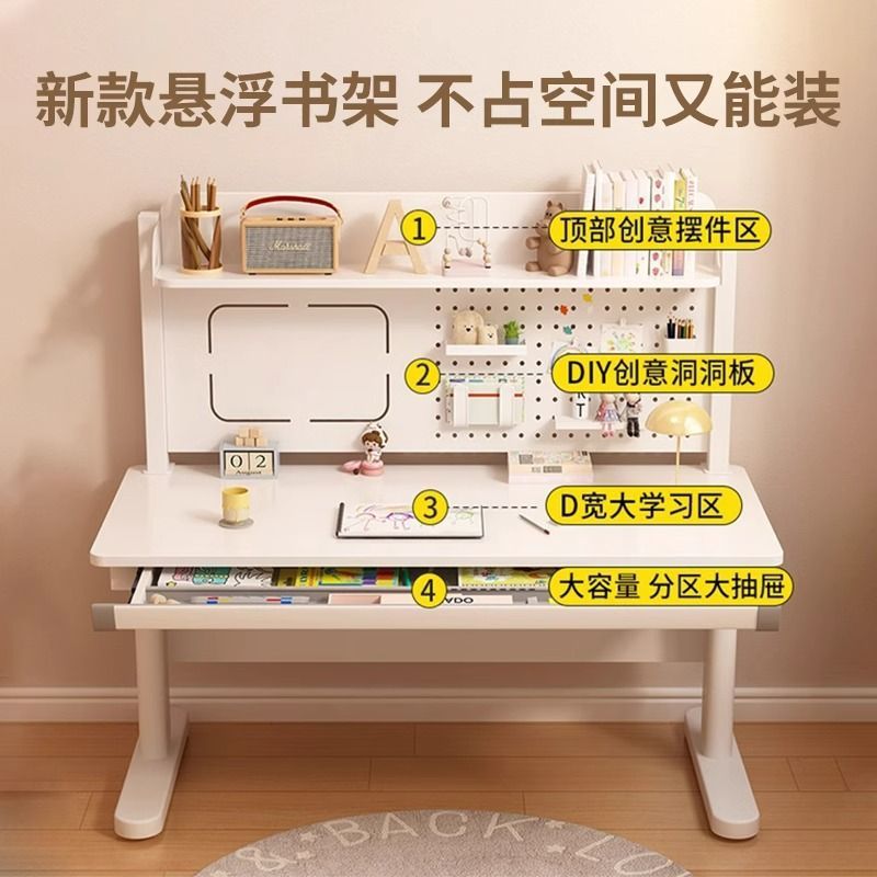 無垢材子供用学習テーブルホールボード昇降式大型白テーブルライティングテーブルと椅子カバー小学生ホームデスク工場