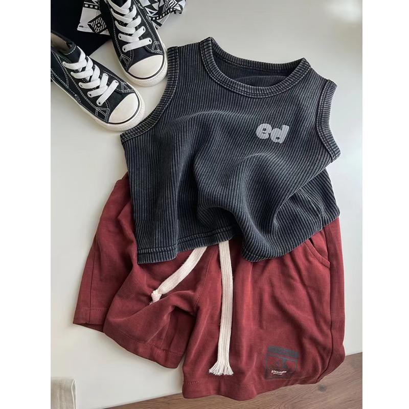 韓国子供服男の子夏スーツトレンディでハンサムでファッショナブルな子供用ノースリーブベストレッドショート