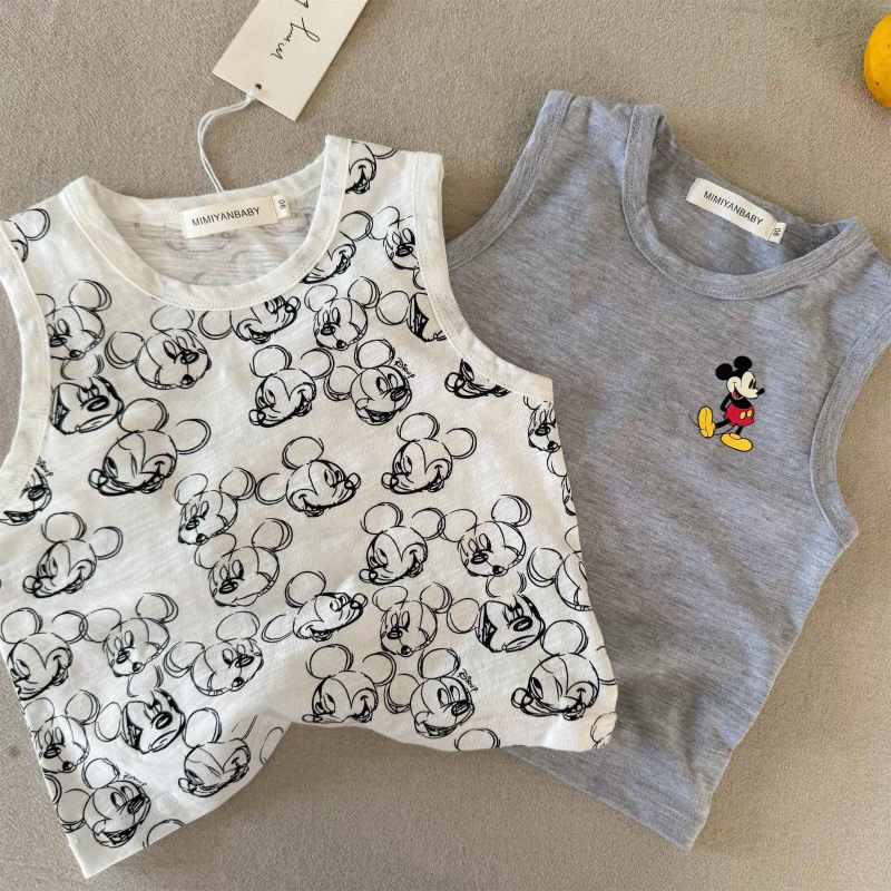 純綿セット男女子供2025夏の韓国版ゆるいノースリーブベスト赤ちゃんの薄いモデルの漫画ベスト2点セット