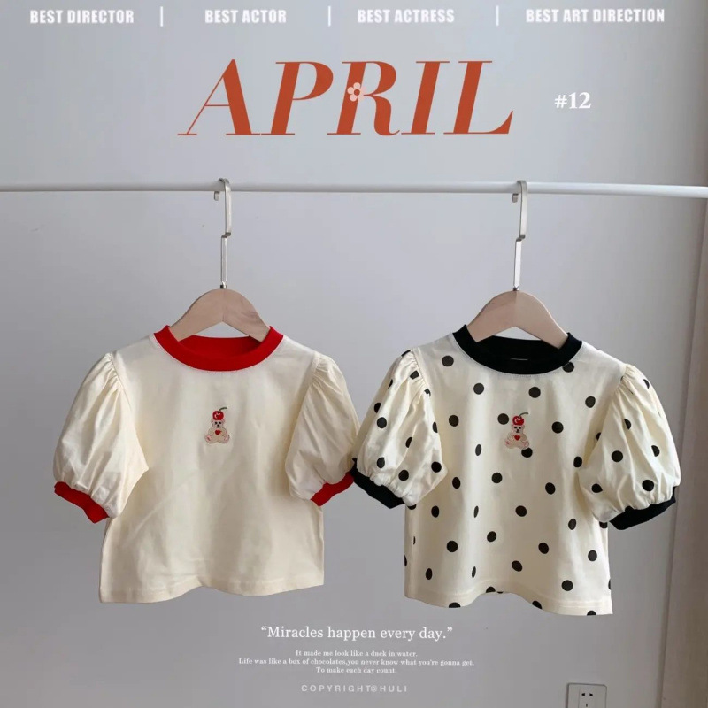 韓国子供服子供 Tシャツ 2025 夏スタイルガールズファッションコントラストカラー水玉漫画ベビー半袖トップ t