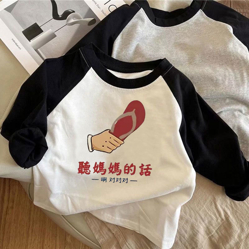 100% 綿子供丸襟長袖春秋新男女子供プリント半袖tシャツ中小子供カジュアルシャツ