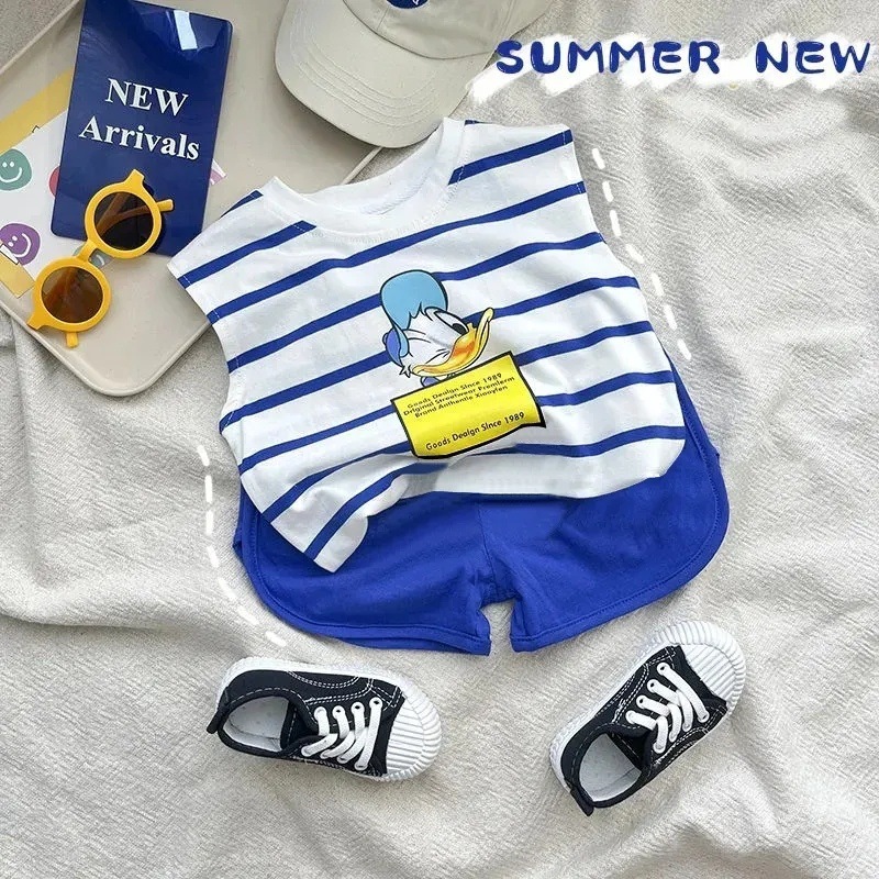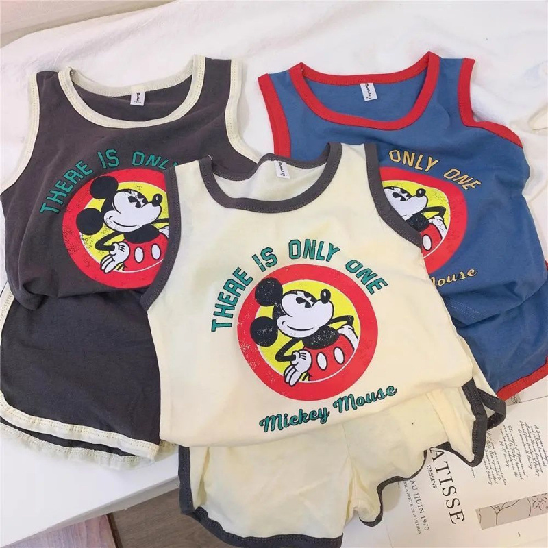 男の子の夏の純綿のベストセットの子供の洋気2025の新型のアニメの女の赤ちゃんの袖なしのベストのショートパンツ