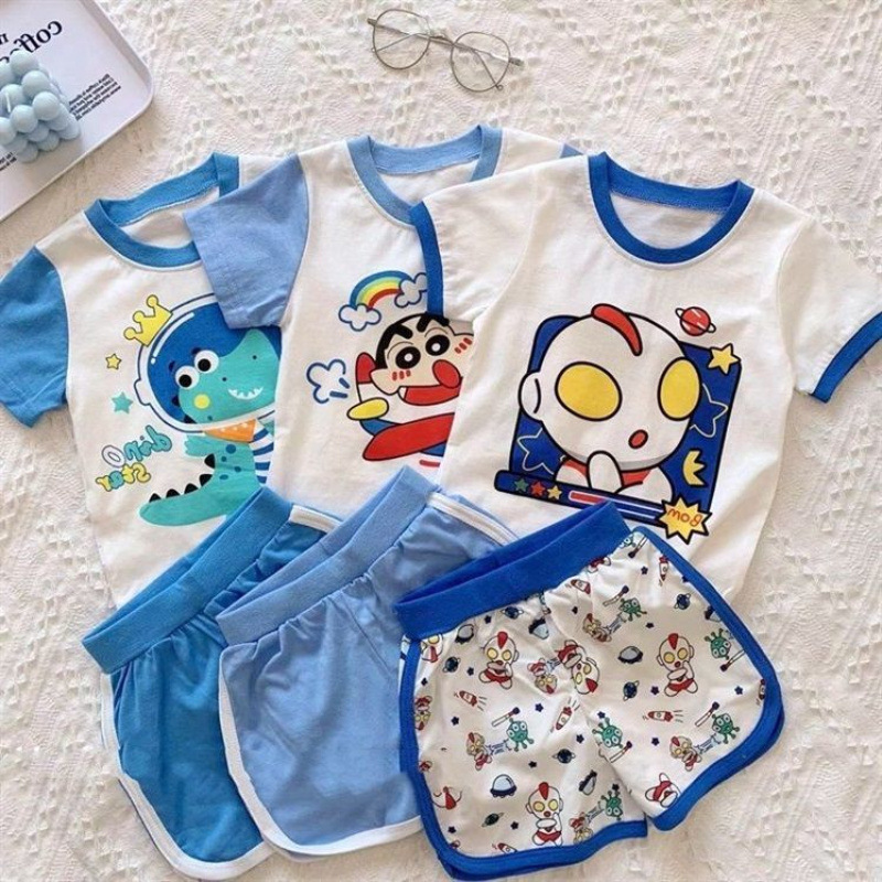 男女子供純綿セット韓国子供服2025新型洋気かっこいい子供半袖tシャツ赤ちゃん2点セット