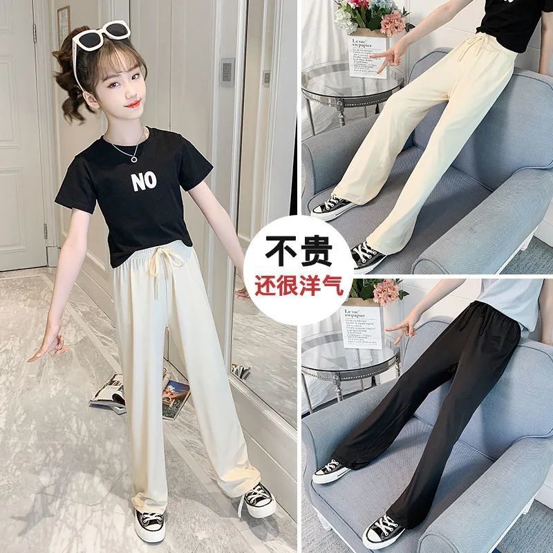 女の子の氷糸防蚊ズボンの夏服の薄いズボンの女の子の広いズボンの洋風のゆったりした大きい子供の直筒の夏の子供