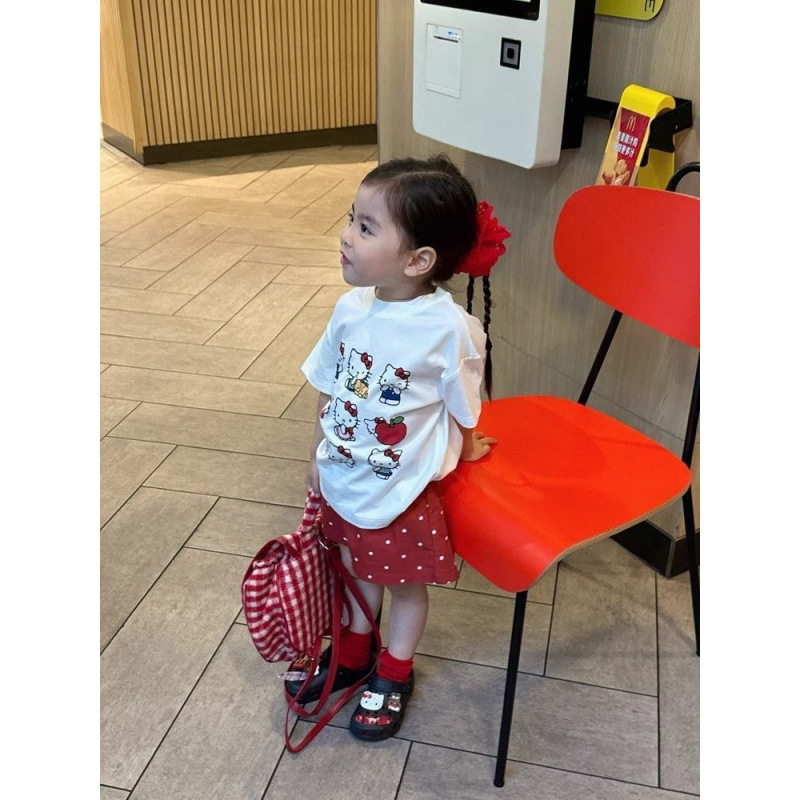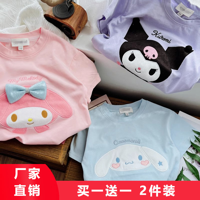 女の子半袖 Tシャツ 2025 純綿夏の新しいファッショナブルでかわいい子供の赤ちゃん漫画プリント多用途トップ