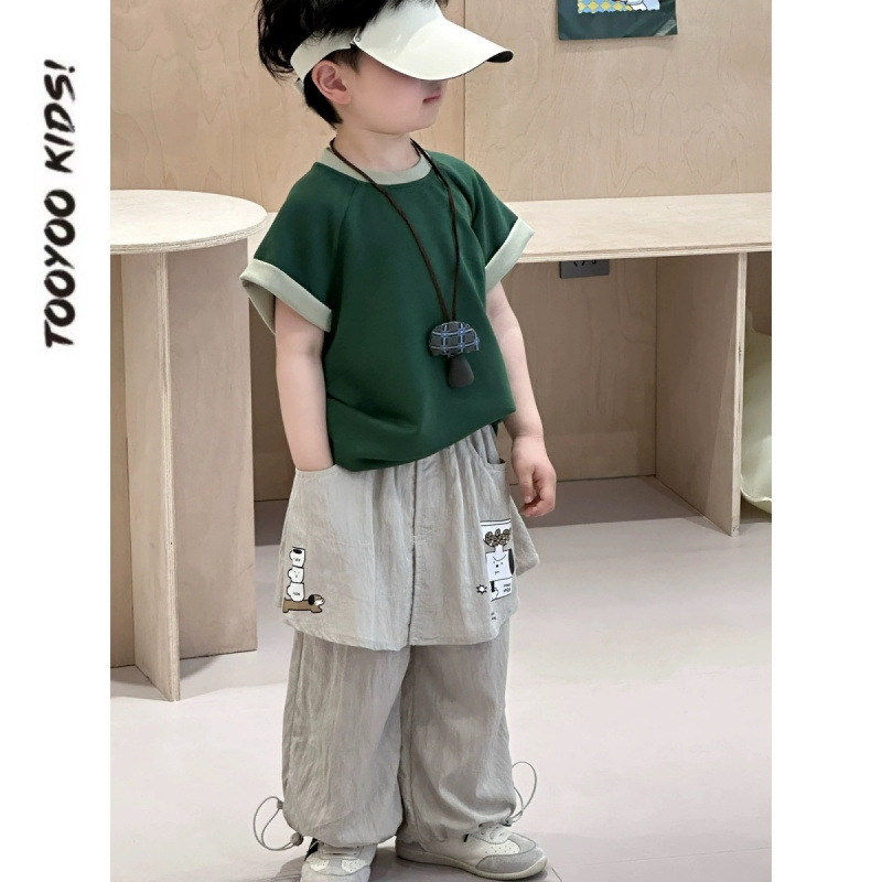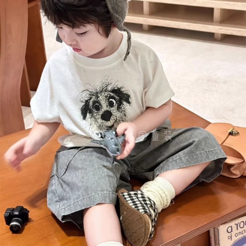 ハンサムでファッショナブルな韓国子供服男の子半袖Tシャツスーツ2025新しいファッショナブルで多用途な夏服子供用トップス