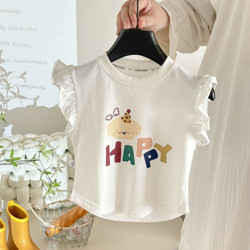 子供の純綿半袖 Tシャツ女の子夏トップス女の子ファッショナブルな小さなフライングスリーブベビー夏カジュアル半袖