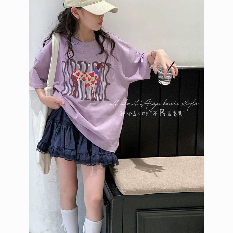 女の子 2025 夏半袖 T シャツ大きな子供のルーズドーパミンファッション小さな新鮮なスタイル多用途コットントップ