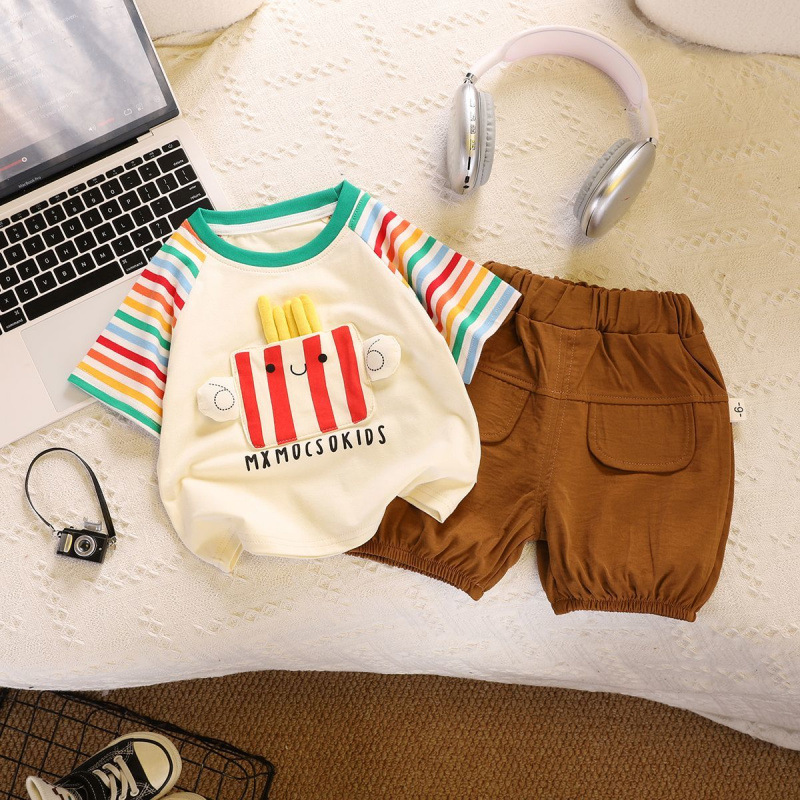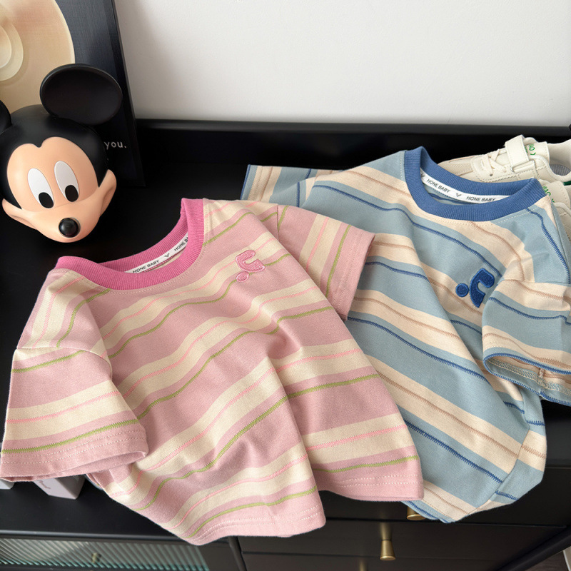 子供の新しい半袖Tシャツ、夏服、ゆったりとした韓国風トップス、万能でスタイリッシュなカジュアルボトムス