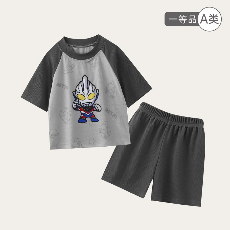 子供用パジャマ、男の子用アイスシルク涼しい夏用薄手子供用半袖ショーツスーツ、中型および大型の子供用空調服