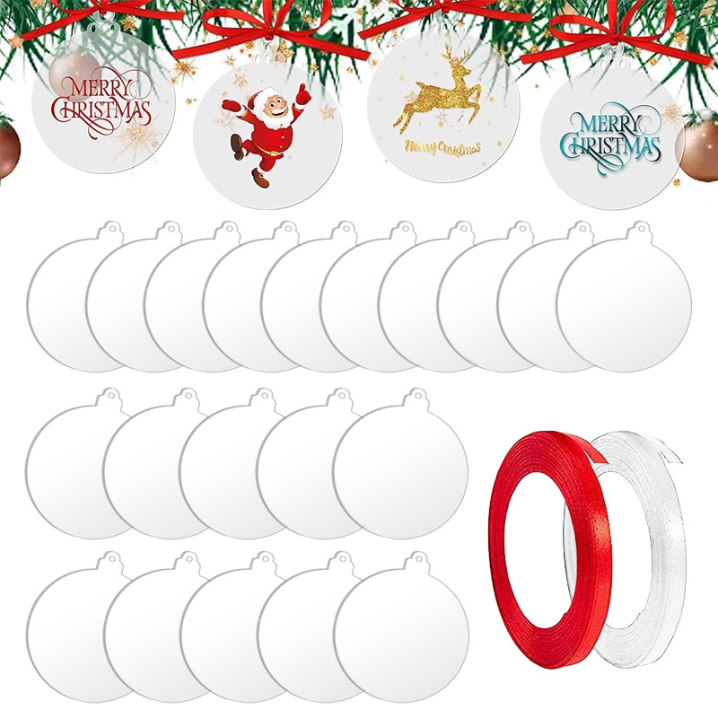 クリスマス透明アクリル空白装飾品diy赤いリボン付きクリスマスツリーパーティー吊り工芸品