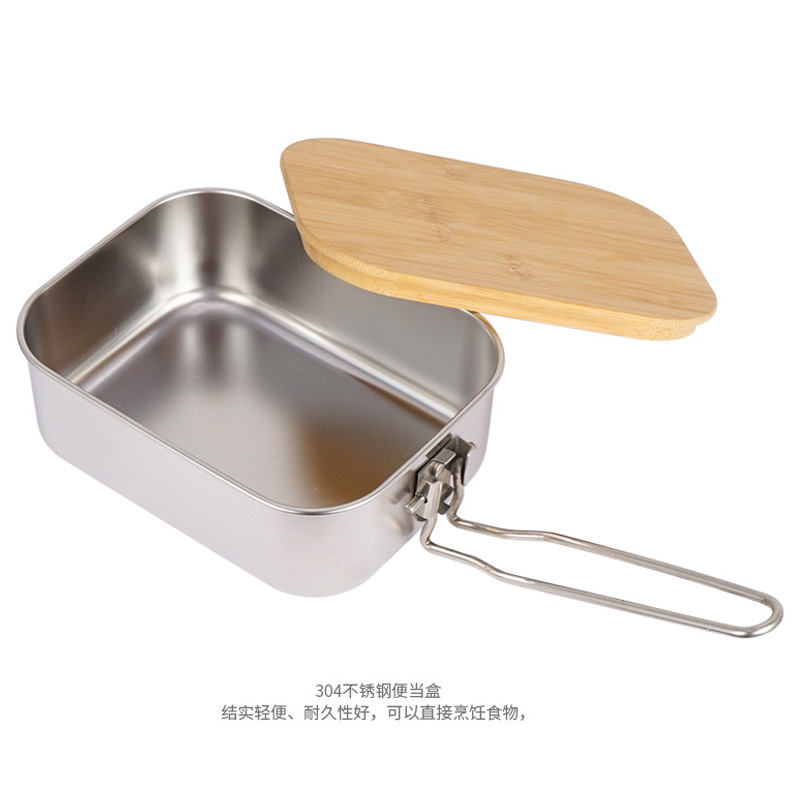 ステンレス竹木蓋弁当箱屋外携帯折り畳み食器ハンドル付き弁当箱食品収納箱新鮮箱