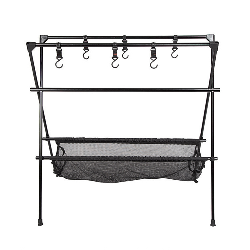 アウトドア携帯キャンプ物置棚収納折りたたみキャンプ二層アルミ合金三角物置棚ネット付兜メーカー