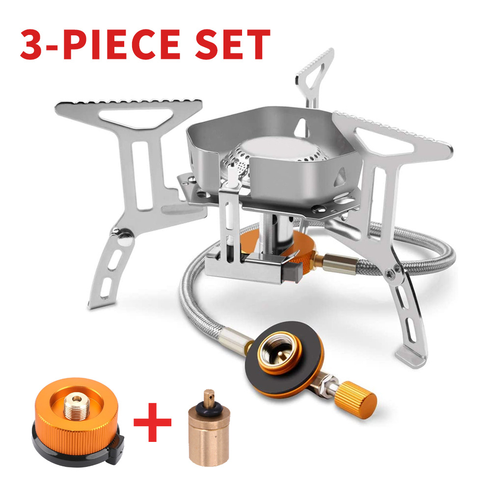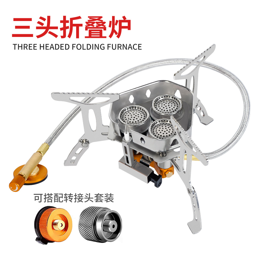 屋外三頭炉携帯野炊炉登山折り畳み可能防風炉ヘッドガス炉携帯リュックサック炉