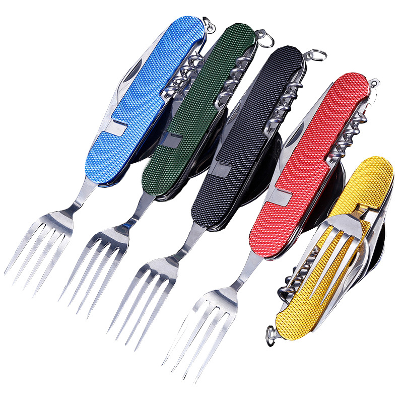 メーカー直販多機能キャンプ分解可能折り畳みナイフフォークスプーンセット六開食器屋外携帯型ギフトナイフ