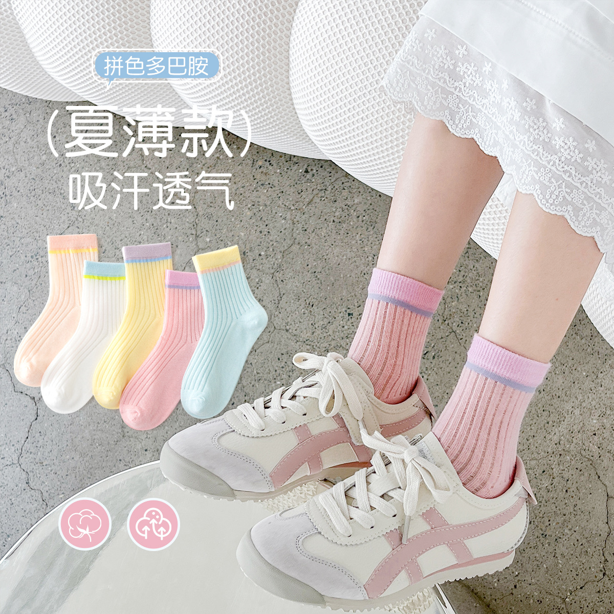 敏榴児童靴下夏の薄いタイプの綿の靴下は色を合わせて合わせます。