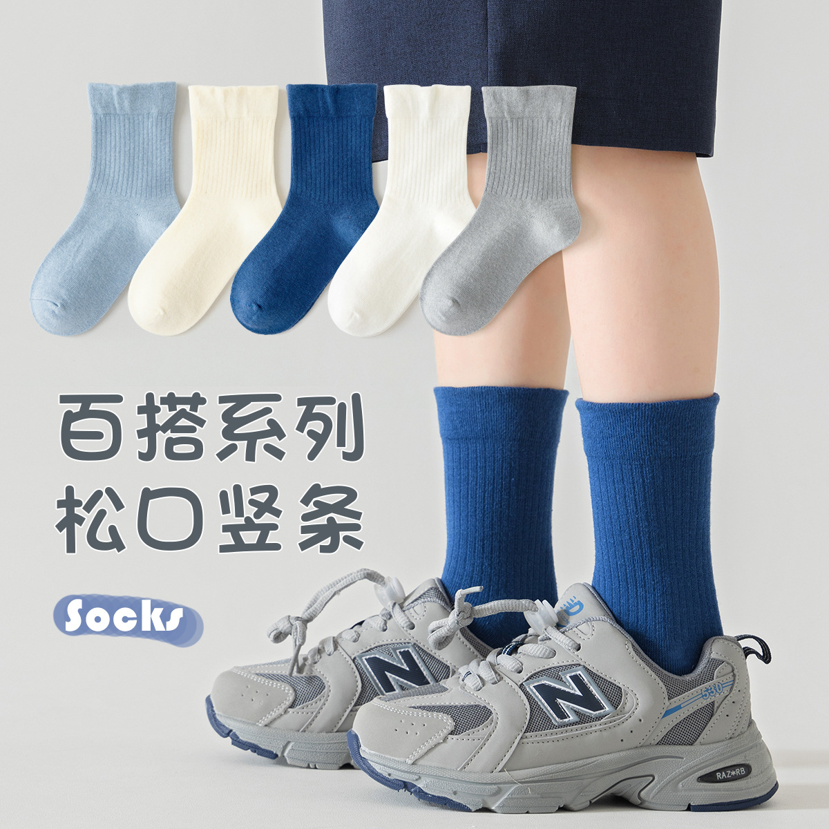 子供の靴下秋の通気性の綿の靴下の中で靴下の男の子の女の子の日本の純色の靴下の秋冬の松口の赤ちゃんの靴下