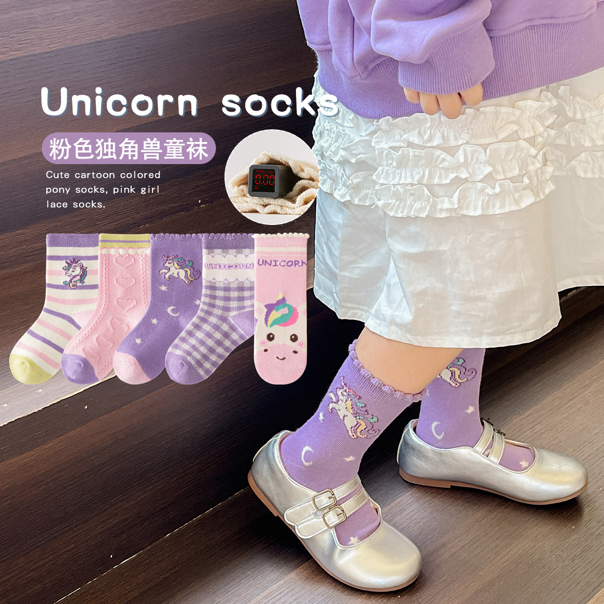 Minliu子供の靴下秋の漫画の甘い女の子の靴下の中筒の靴下のピンクのかわいい愛の赤ちゃんの靴下