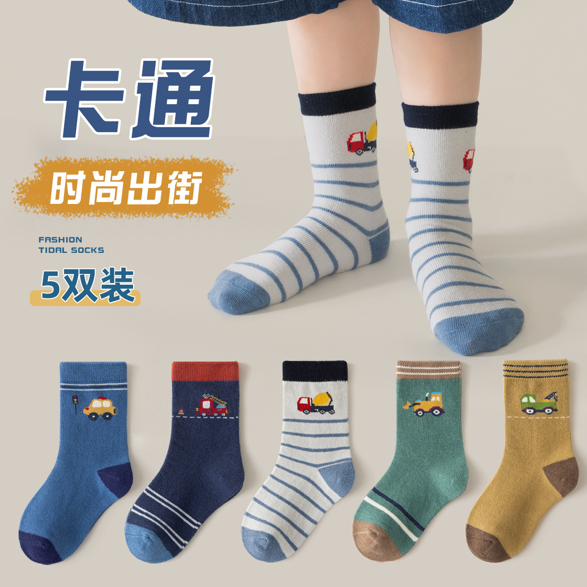 2025 男の子の靴下秋と冬の漫画ミッドチューブソックス中大男の子子供の靴下春と秋の綿の靴下学生靴下
