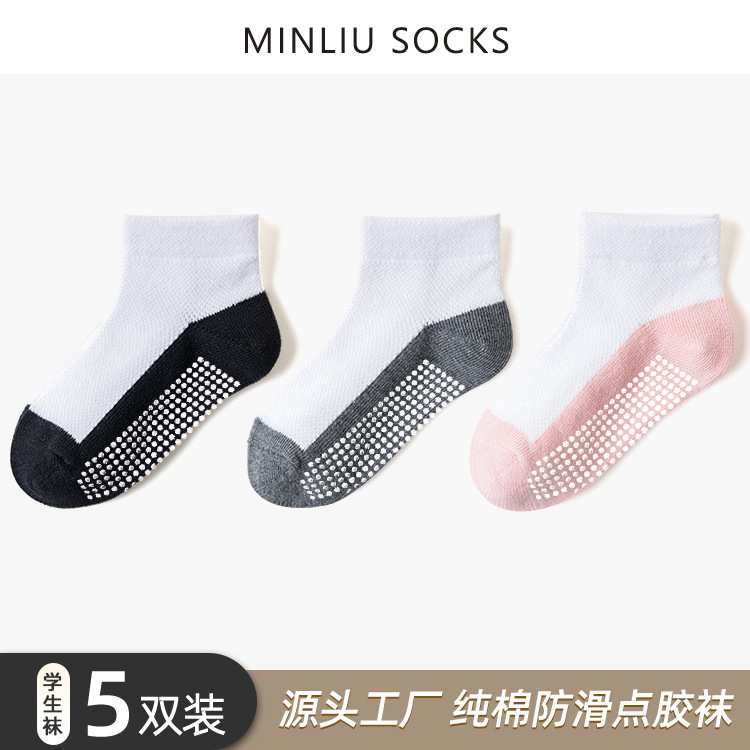 新しい純色の網の目の滑り止めの床の靴下のソックスの春夏の薄いタイプの子供の綿の靴下の男女の子供の靴下の学生の靴下は色を合わせます。