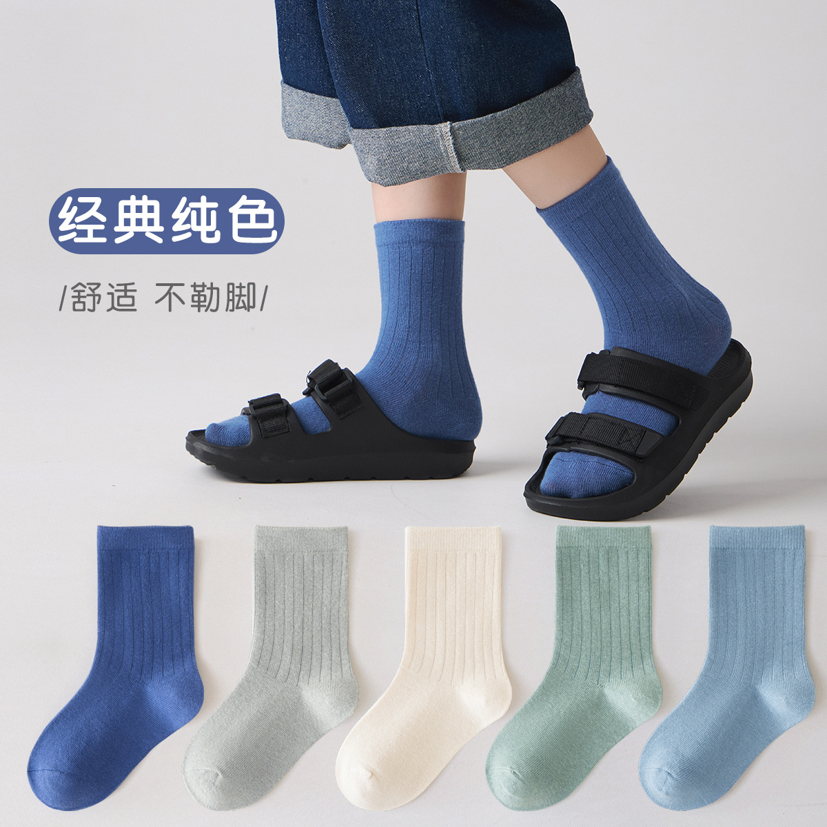 子供用靴下春と秋の通気性綿の靴下の経典の純色の中で大きい子供の男の子の女の子の韓国系の秋冬の縦条の中で靴下