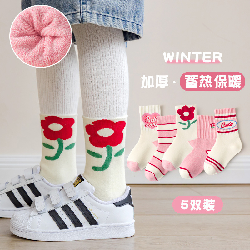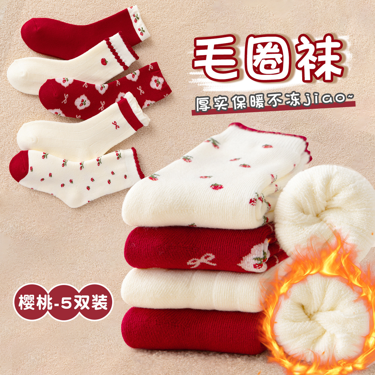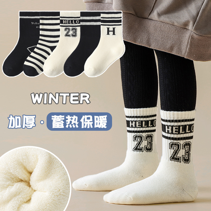 2024冬の子供の靴下は保温毛輪靴下の中筒靴下の男の子の女の子の綿靴下を厚くして赤ちゃんの靴下を卸売りします。