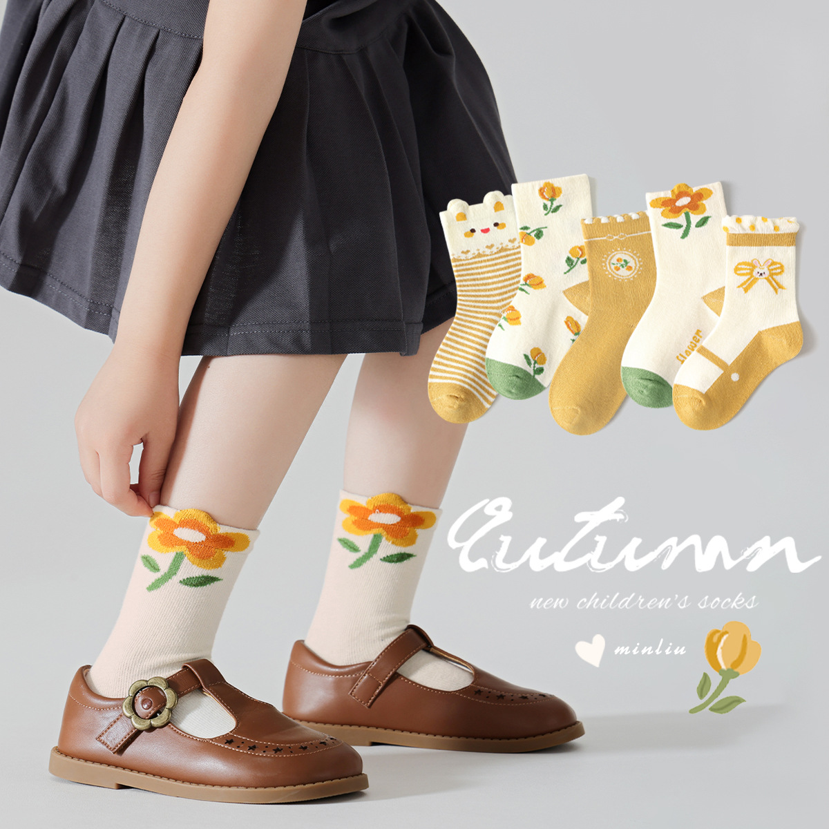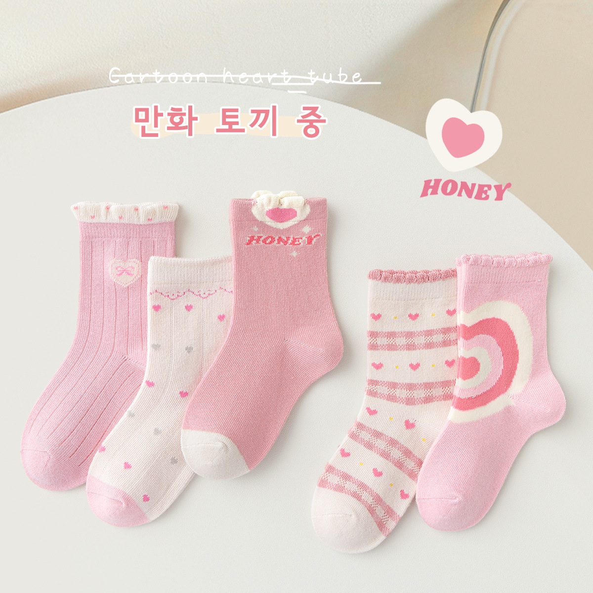 Minliu 2025 子供靴下秋の綿の靴下甘い愛の靴下ベビー中大型子供靴下カテゴリー A 女の子靴下
