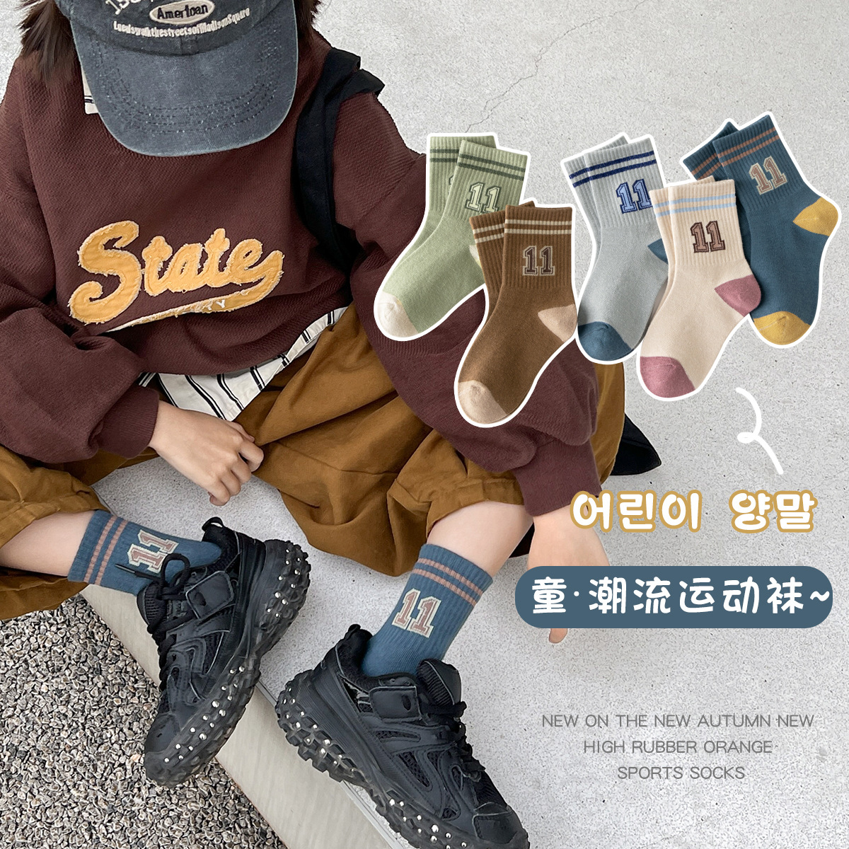 男の子の靴下の卸売り春秋の子供の運動の綿の靴下の青少年の数字の中で筒の靴下のアルファベットの学生の靴下の中で大きい子供