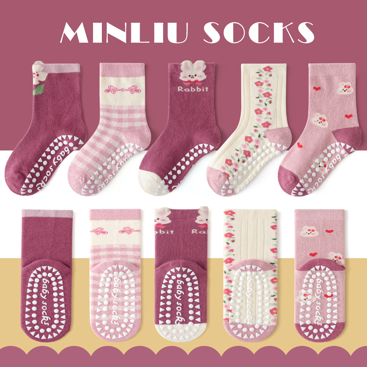 Minliu子供靴下滑り止め床靴下秋の花女の子点ゴム学歩靴下中筒靴下綿靴下卸売り