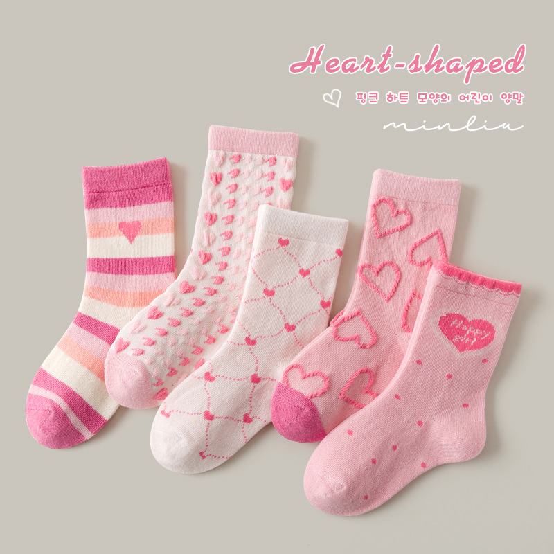 2023敏榴児童靴下秋綿靴下漫画愛心靴下赤ちゃん中大童靴下少女靴下卸売り