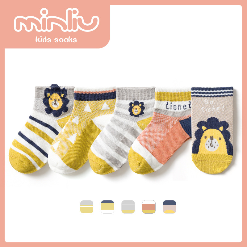 子供の靴下の敏榴春夏の新型の男女の子供のメッシュの靴下の通気性は汗の漫画のライオンの赤ちゃんの靴下の卸売りを吸います。