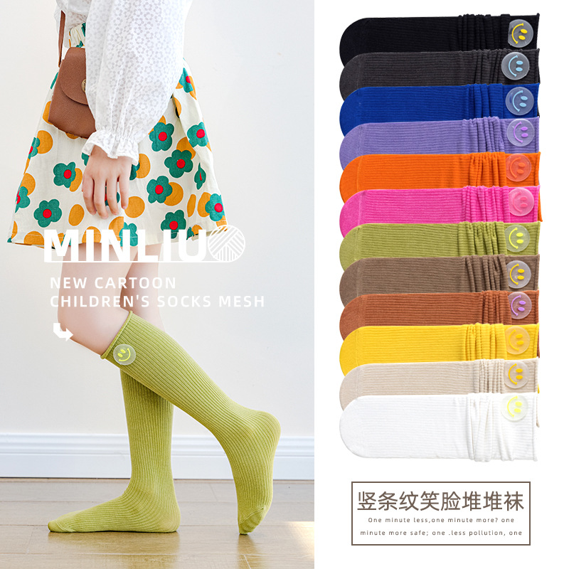 春と秋の子供の中筒の積み重ねの靴下の純色の赤ちゃんの綿の靴下の女の子のinsのファッションの靴下の縁の王女の靴下の卸売り