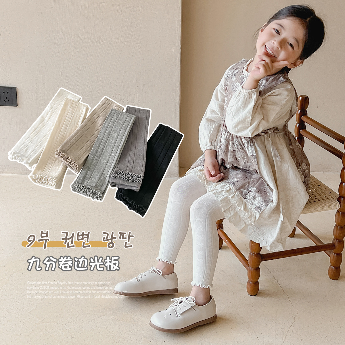 2024秋の子供用レギンスの靴下は女の子のレギンスの靴下に合わせて純色の女の子の赤ちゃんの9分のズボンになります。