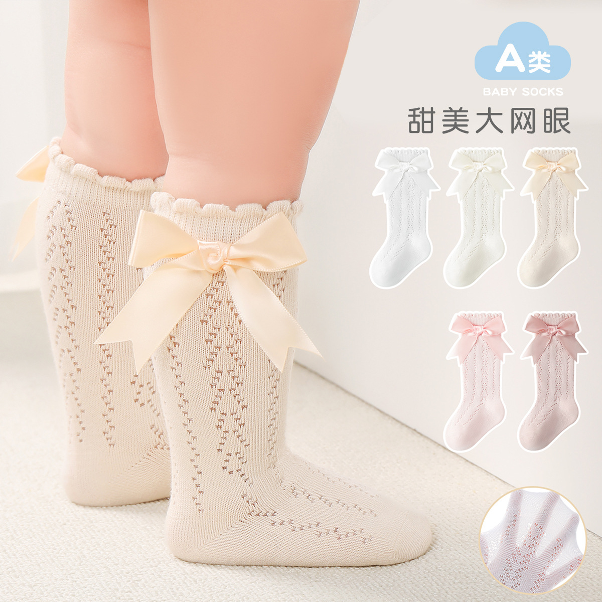 ベビーソックスボンレス韓国ベビーソックスリボン薄いメッシュ通気性多用途ミッドチューブレースソックス